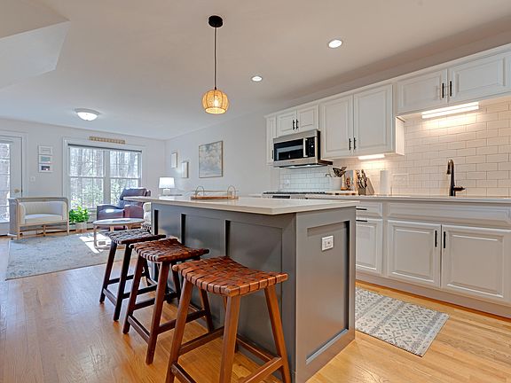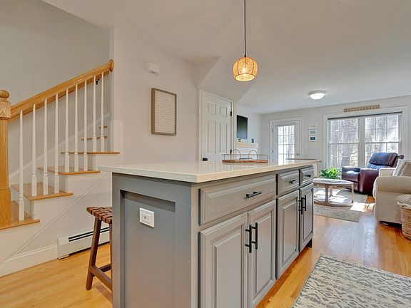 This adorable condo is less than a mile to all the beautiful downtown Kennebunk and is surrounded by 70 acres of Maine state forest reserve! Come check out this great condo in a wonderful location at the Open House June 1st 10:00-12:00. The current owners have updated the entire downstairs. Enjoy cooking in this beautifully updated kitchen which features a spacious island great for prepping and gathering. Step out on the back patio to enjoy the wildlife, the forest and the beauty that surrounds this property. Upstairs you will find two bedrooms with hardwood floors a full bath and laundry room. The FHW furnace was installed in 2020. This condo has a parking spot and a one car garage with a ton of storage above the garage and in the attic. This property is a year round condo.