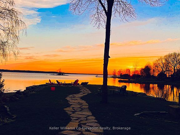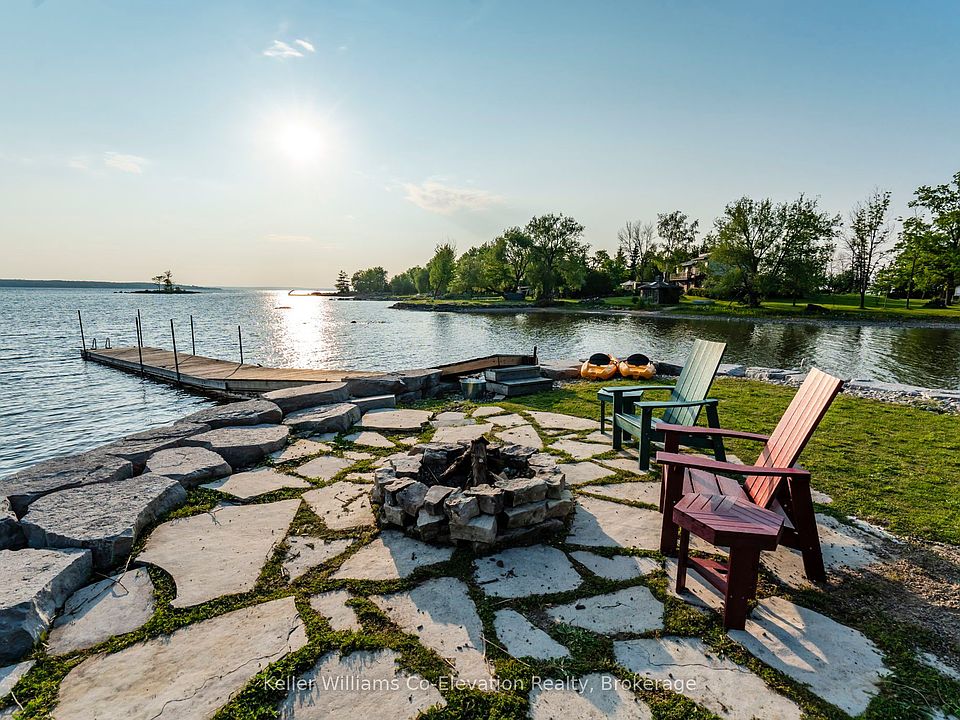 Spectacular Waterfront living on Georgian Bay from this Exclusive Peninsula Point Offering 270 Degree Water Views and Breathtaking Sunsets 365 Days a Year. Welcome to your dream retreat. Built in the last 5 Years this exceptional 4-bedroom waterfront home captures the essence of its surrounding Beauty. Perfectly designed for relaxation/entertaining and meticulously maintained, this property offers a blend of elegance and practicality. Natural light pours through the home with its abundance of windows. Key features include: a total of 4 spacious bedrooms, open concept living with two sunrooms a great room with walkout to the expansive deck overlooking the waterfront and large dock. The perfect home for hosting family or guests in style who will surely want to extend their visit. The drive through garage provides plenty of storage along with the multiple outbuildings and is spacious enough for a workshop, insulated and has automatic opening garage doors at either end. The landscaped grounds and multiple outdoor seating areas are easily maintained and cared for. The Property itself is truly one of a kind and provides very accessible entry to the Bay, with shallow areas for children to play, and is approx 4-7 feet deep at the end of the dock making for excellent swimming and water sports. Enjoy great fishing from your dock, or take a boat ride out into Honey Harbour or explore the rest of Georgian Bay and indulge in some of the best local hot spots in the area. Positioned minutes to amenities like Golf, Skiing, Marinas, Parks, Trails, Grocery Stores and major highway access this home truly invites you to indulge in the best of lakefront living year round. Seize this incredible opportunity to start your dream life this summer and welcome home to your 4 season sanctuary, where relaxation meets convenience and every day feels like a holiday. Don't miss the opportunity to live in a kind piece of paradise on crystal clear Georgian Bay.
