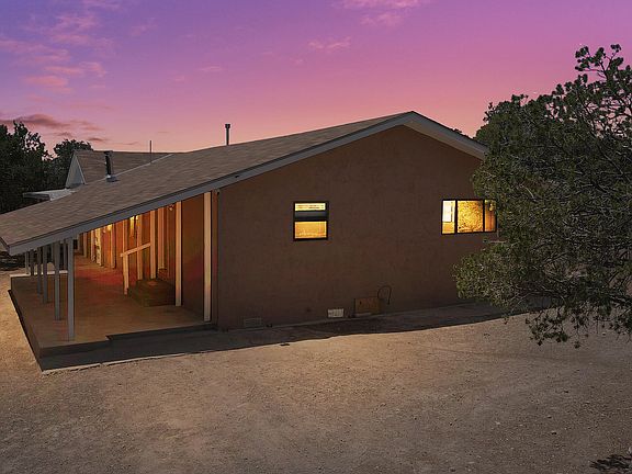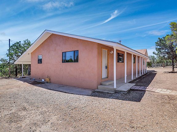 Delightful 3 bedroom home nestled in the East Mountains situated on a 1.13 acre wooded lot! Inviting floor plan includes 2 living areas, 2 wood stoves, a great kitchen with tons of cabinet space and dining area, and two primary bedrooms with both having their own bath and one that has access to the backyard. There is also attic space for storage. Expansive yard is home to peach and apple trees, a horse corral that provides ample space for equestrian activities, a loafing shed to ensure your goats have shelter and a chicken coop providing a perfect environment for raising hens and collecting eggs. An ideal retreat for nature lovers and aspiring homesteaders alike.