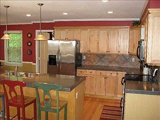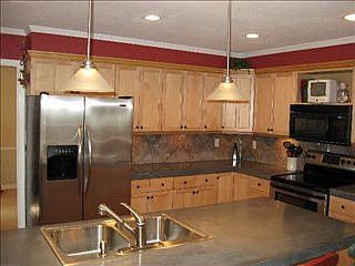 EASTSIDE: This lovely, well maintained two story situated on an oversized (over 1/2 acre) wooded lot is the perfect family retreat! Special features include huge main level bonus room, perfect for family games, monster media room, project or exercise space, studio, etc. etc. The updated and open kitchen den combo with stylish brick fireplace is another great gathering place for family and friends. The kitchen has lots of cabinets, nice appliances, and very cool concrete counter tops and island. The house also features formal living and dining rooms, lots of lovely hardwood floors, a large master suite with room to relax, and a gracious updated bath w/double vanities, separate shower and whirlpool tub. 3 more bedrooms with plenty of closet space and another large updated tile bath round out the 2nd floor. Storage space is ample throughout the house. The walk in laundry room and 1/2 bath are off of the den. Outside features a two car side-entry garage with storage/workshop room, rear deck, and partially fenced (wood privacy & picket) back yard. Storage building is negotiable.