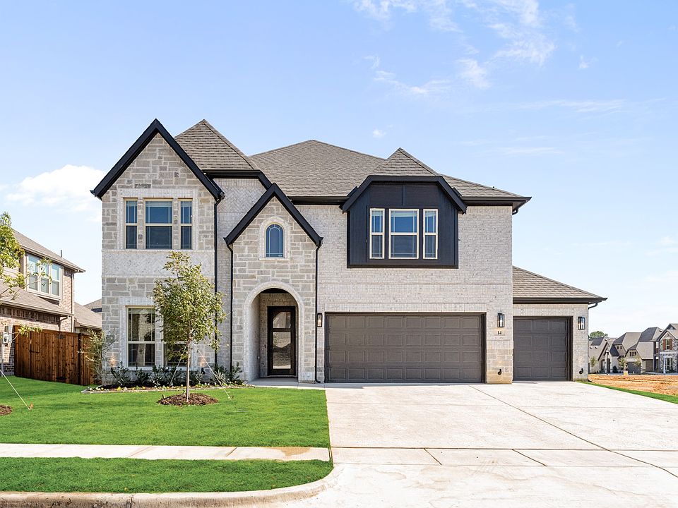 NEVER LIVED IN NEW HOME! READY NOW! Bloomfield's Rose II is an inviting open-concept home designed for effortless living, with thoughtfully integrated upgrades and stylish architectural details throughout. The Family Room features a soaring vaulted ceiling that enhances the open feel, while abundant windows fill the home with natural light. A flexible space just off the Family Room and Kitchen area adds versatility, ideal for a playroom, home office, or additional lounge. The Deluxe Kitchen impresses with upgraded cabinetry, a wood vent hood, pot and pan drawers, and striking Level 2 Quartz countertops that elevate both form and function, all complemented by sleek all-electric stainless steel appliances. Wood-look Tile flooring in Level 5 extends through the entire first floor, excluding the Primary Bedroom, while all bathrooms are enhanced with Level 1 Tile in an offset pattern for added character. The first-floor Primary Suite is ideally located for privacy, and the large mud laundry room adds everyday convenience. Upstairs, a spacious Game Room adjoins a Media Room, offering endless entertainment possibilities. Step outside to a private backyard retreat with a Covered Patio, set on a desirable interior lot with a charming brick and stone façade. Additional highlights include a striking Stone-to-Ceiling Fireplace with a cedar mantel, an 8' Front Door for a grand entry, a full 3-Car Garage with an extended bay for longer vehicles, and carefully selected finishes that blend durability with high-end style. Call or visit Bloomfield today!