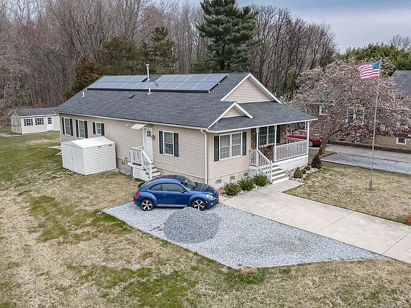 KEY READY! CALL THE MOVERS! Great curb appeal in this home built in 2007 with gorgeous stone front elevation. Hardwood floors flow throughtout the main living areas, new neutral carpeting, freshy painted throughout the home. The open concept kitchen opens to the living room with gas fireplace and the dining area, which open space is ideal for entertaining. The kitchen features all stainless appliances and maple cabinets. There is a walk-in pantry off the kitchen. Spacious owner's ensuite with walk in closet and private bath. The second bedroom is also large with bath. The third bedroom (flex room) with double glass doors. Large and convenient mud/laundry room. The back door leads to your relaxing rear deck with awnings and descend the unique circular stairs to your 15 x26 stamped concrete patio overlooking your serene, wooded backyard. Other amenities include efficient gas heat, central air, extra driveway space, and two storage sheds. Save on electric costs with the leased solar panels already present on the home. Minutes away from major routes for an easy commute.