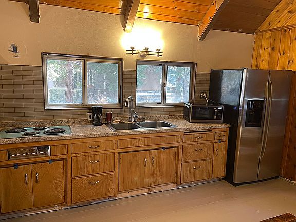 Beautiful national forest cabin with Apple Homekit: encrypted video cameras, Smart light switches, bluetooth ceiling light fan- speaker in bathroom.Great room has knotty Pine, floor to ceiling. 200 square foot loft not included on overall square footage. Purchased in 2003. Recently remodeled kitchen wall and completely remodeled bathroom with 6 in 1 Delta shower; rain-head, handheld and wall jets. 12 years on a 40 year roof, 900 gallon septic tank with 10 year old enlarged leach field. High efficiency wall furnace installed 10 years ago. 200 amp electric panel installed 14 years ago. 2 bedrooms with partitioned( 2007) closets and built in desks. In the finishing stages of renovation. All cash or 25-35% down and a 15 year mortgage with owner carrying note at 1% above current APR., if your credit is above 750, long term employment or business and savings associated with home ownership. Will consider a lease option for someone who meets above criteria. Text to (909) 360-9060 preferred to calls. Relators, agents contact ONLY if you have a qualified buyer wanting to schedule a viewing. I will pay 2% of the sale price for an agent who brings in the final sale. Mortgage brokers, agents, escrow companies are not needed. Please, do not contact. I have established professionals.