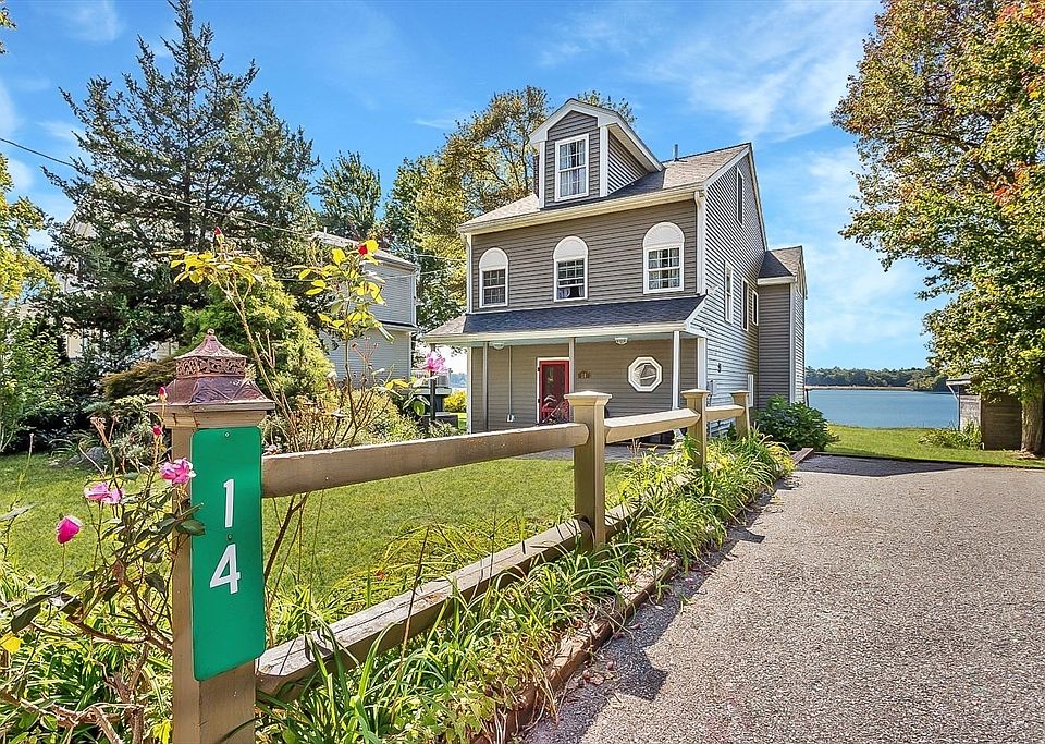 14 Maplewood Ave offers stunning waterfront living on Winnecunnet Pond! This 4BR, 2.5BA home welcomes you with panoramic pond views the moment you enter. The first floor features a kitchen with granite counters, coastal blue cabinets, tile flooring, stainless appliances, and space for dining. The open living/dining room showcases southwesterly water views, a pellet stove for cozy nights, and wall A/C for summer comfort, plus a convenient half bath. The primary suite offers breathtaking views, private balcony, and ensuite bath. A spa-like main bath boasts a soaking tub, tiled shower, and laundry. Another bedroom completes this level, while the third floor offers two more bedrooms. The back patio is perfect for entertaining and soaking in sunsets. Enjoy boating, kayaking, fishing, and year-round recreation right from your backyard—all within easy reach of restaurants, shopping, highways, and public transit. This home also has a whole house generator! Schedule your showing today!