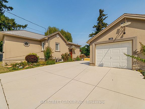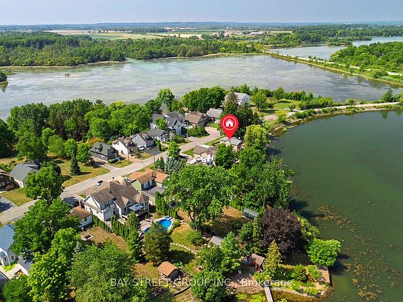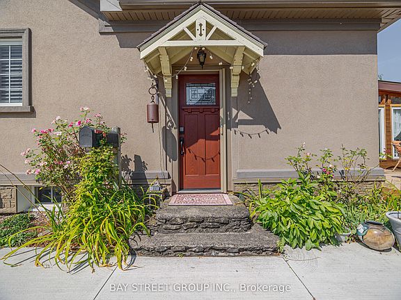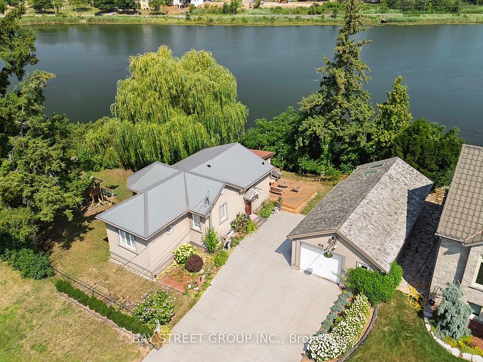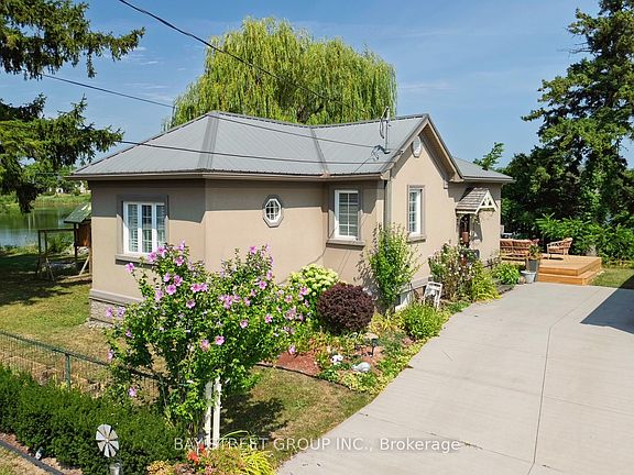 Magnificent trees, 150+ ft of water views, and breathtaking sunsets on Lake Gibson - a rare private oasis with a charming cottage-like feel on peaceful, historic Beaverdams Island in the heart of the Niagara Region! Nestled on a quiet cul-de-sac and surrounded by water, this property offers exceptional privacy yet is just steps from the Pen Centre and scenic hiking trails. The generous, well-treed yard is ideal for entertaining, with a large deck, perennial gardens, stone pathways, three storage sheds, and a playset. A stone path leads to the waterfront, where you can enjoy mesmerizing views - perfect for nature lovers and retirees seeking a relaxed lifestyle. Inside, the charming 2-bedroom, 1-bath home features a sleek eat-in kitchen, bright living room with gas fireplace, and an newly updated all-season sunroom with heating. The extra-large heated garage offers a spacious workshop/man cave/she shed with a newer cedar roof. A building permit is in place to convert it into a separate two-bedroom unit with living room, laundry, and kitchen - ideal for extended family or guests. More updates include a metal roof, most windows, exterior plaster, new concrete driveway (2022), gas stove (2022), and deck (2024). An oasis that feels like Muskoka, with quick access to Niagara's vineyards, shopping, and highways. Truly a must-see!