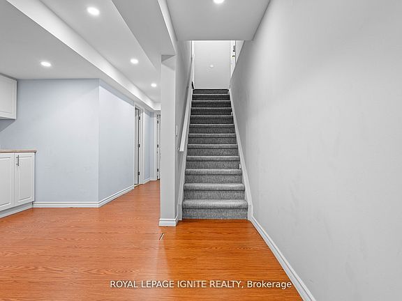Cozy Basement Unit With Separate Entrance. 1 Spacious Bedroom And A Nice Layout Perfect for Professional Individuals Or Couples. Beautiful Bright Kitchen With Plenty Storage, Double Sink, And Pot Lights. Spacious Bathroom With Stand Up Shower. Large Combined Living and Dining Area -Open Concept. Pot lights throughout. Quiet Neighbourhood With Public Transit Access And very Close To Williamson Dr E/Audley Rd. Family Friendly Area With Numerous Schools. Close to Audley Recreation Centre, Parkettes, Longos, Canadian Tire, Costco, Home Depot and many more Stores Nearby. Utilities are shared 25% Tenant . Water , Heat , Hydro, HWT. Tenant to Obtain own Internet. Basement Laundry for Tenant Use Only.