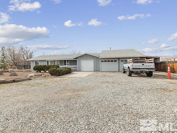 Adorable little homestead just minutes from downtown Main Street! This 3 bedroom, 2 bathroom ranch style home is cute and cozy and sits on a 1.23 acre lot zoned for horses. It has a nice size living room, and a dining/kitchen combo with a wood burning fireplace that will heat the whole house. The bedrooms are a nice size with the master bedroom having it's own attached bathroom., This home is virtually staged. The house originally had just a one car garage, with the entrance at the end of the hallway by the second bath. The owner built another two car wide, extra deep, garage whose entrance is through the laundry room. The new garage can park up to 5 cars, and there is a car port attached to the side that can fit an additional 2 cars. Between the garages and shop, this home has amazing storage/work space for all of your vehicles or anything you could think of. There is a great front porch with a swing for you to enjoy the summer evenings. The lot is a huge, 1.23 acre rectangle with so much potential. Bring all the critters, your green thumb for a garden and all of your toys. There are a couple of outbuildings that could be used as animal shelters, think fresh eggs, or storage and a large shop ready for vehicles or a small RV, and there is a fenced dog area already on the property. There are so many great attributes of this property, you just have to come see for yourself! This home qualifies for a special financing program through Nevada State Bank with a low 3% down and a zero cost application fee. Call us for details.
