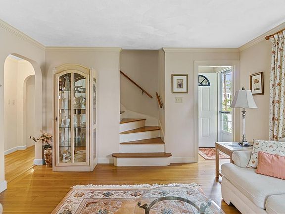 Very well maintained Cape Cod in the charming Knightsville section of Cranston. Solid bones with many possibilities. Large eat-in-kitchen area includes stainless steel appliances that convey with the sale. Awesome 3 season room/porch that goes into the rear yard and enters through a set of sliders directly from the kitchen area. Hardwood floors and tiled baths. One first floor bedroom, two on the second floor, one in the basement. A finished basement with a dry bar, game room, laundry and storage area with a bulkhead out to rear exterior. Walk to the great restaurants/bars and bakeries of Knightsville!