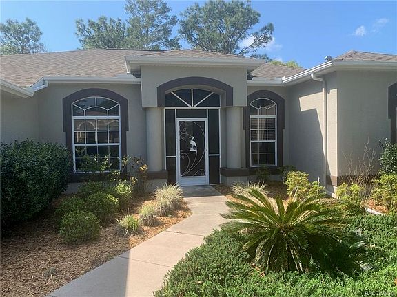 This beautiful and distinctive 3/2/2 concrete block home is situated in Sugarmill Woods Oak Village South, just minutes away from the Suncoast Parkway and US Hwy 19! Features include available high speed internet, a screened-in lanai with four separate access points, including a triple door slider from the great room, an expansive main bedroom ensuite with garden tub, shower, dual sinks, walk-in closet, and separate area that can serve multiple purposes, formal dining room area, inside laundry, eat-in kitchen with breakfast bar possibilities, and a backyard with privacy. Easy to love the split floor plan, abundant natural light, large kitchen, high ceilings, irrigation well, and other features this home offers.