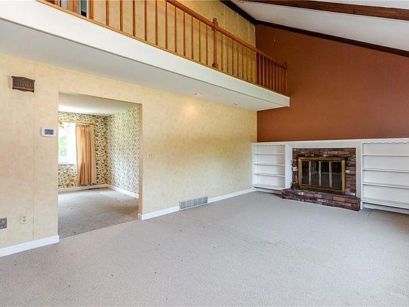 Set on a generous, 1/2 acre lot with a sprawling backyard, this 2,100+ sq ft home offers incredible space, comfort, and opportunity. The main level welcomes you with a dramatic vaulted living room featuring exposed beams, a cozy brick fireplace flanked by built-in shelving, and oversized windows that invite natural light. A formal dining room and a charming kitchen with a pantry closet add functionality, while the main-floor primary bedroom suite boasts a walk-in closet and private bath for everyday ease. Upstairs, two additional bedrooms and a full bath provide room to grow, while the finished lower level offers flexible living with a second fireplace, full kitchen, and walk-out access to the backyard patio - ideal for extended family, guests, or future in-law potential. Central AC, a 2-car garage, and low-maintenance vinyl siding add convenience, and the home’s solid bones and generous layout make it a canvas ready for your modern updates. With large rooms, abundant storage, and timeless architectural features, this property offers space to spread out and the potential to make it truly your own.