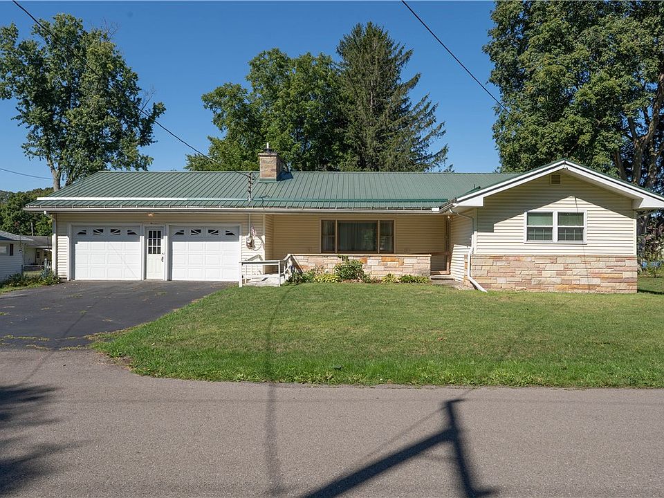 Charming One-Level Living in a Prime Arkport Location! Welcome home to this spacious 3-bedroom, 1 full and 2 half bath ranch-style residence nestled in a highly desirable neighborhood. Step inside to find a generous living room featuring a cozy fireplace. The formal dining room provides a great space for hosting family and friends. On the left wing of the home, you'll find the kitchen complete with stove, refrigerator, and dishwasher, plus a convenient half bath and a separate laundry room for added ease. On the right side, you'll find three well-sized bedrooms, all with closets, a full bathroom, and an additional private half bath off the primary bedroom. Downstairs, a finished basement offers a versatile space ideal for entertaining or relaxing after a long day. Additional highlights include an updated metal roof, hot water tank is only 5 years old, central air conditioning, 2-car attached garage and a fantastic location within walking distance to the school and all of Arkport’s amenities. Don't miss out on this great opportunity!