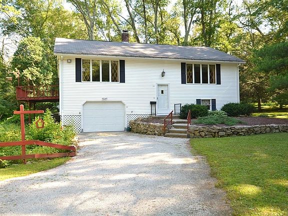 Extremely WELL MAINTAINED Home in A Tranquil Setting. The Floor Plan is Perfect for ENTERTAINING . Front to Back Living Room w/ Built Ins , Plenty of Windows & A Slider Flooding the Room W/Lots of Natural Light. OPEN FLOOR PLAN as Family Room Flows into the Oversized Eat In Kitchen. Large Bedroom & Full Bath Finish off the 1st Floor. The Mud Rm/Laundry Room has a Sink & Cabinets & is Located Directly off the Heated Garage. Family Room, Another Bedroom & Full Bath are in the Lower Level. This Home has More CLOSETS Than You Can Fill, Central Air, Vinyl Sided, De-Icer on the Roof. An Acre of Land W/Stone Walls, Walking Trails, Gardens & Storage Shed. Brand New Septic Being Installed.