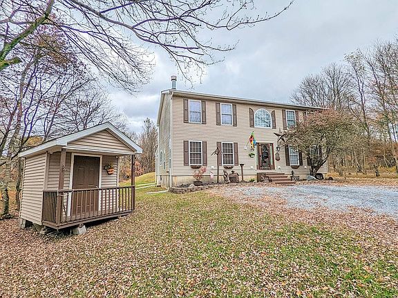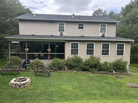 Welcome to 14 Minnie Ha Ha Rd! This beautiful 4 bedroom, 2.5 bath Colonial is nestled on a quiet, dead-end street with one other house and is surrounded by vacant lots with plenty of trees, giving you peace and privacy. It is the perfect location for year round living or as a vacation home. Home is being sold FULLY FURNISHED. Furnishings included in the sale price. The beautiful front entrance features high ceilings, an open staircase, ceramic flooring, and a lovely chandelier that can be seen from outside through the large window. Make your way to the cozy living room featuring a fireplace (electric) and cozy rustic sofa and loveseat. The eat-in kitchen boasts plenty of cabinets, wine rack, pantry, breakfast counter, dining table and chairs, and stainless steel appliances. The first floor also has a "Jack Daniels" themed tv room with a propane fireplace and a neat barrel table with stools, a separate dining room, an adorable "Jack Daniels" themed powder room, laundry room and an addition off the back that is currently a bar/game room with a shuffleboard table. The kitchen and game room have sliding doors that lead to the covered deck where you can enjoy your morning coffee and the sweet sounds of nature. The open staircase leads you to the second floor which offers 4 bedrooms and a full bathroom in the hallway. The beautiful Master Bedroom has a King size log bed and log dressers. The Master Bathroom features a 5'x5' walk-in shower with rain shower head, hand held shower and double vanity. Some of the decor/furniture is very unique yet very tastefully decorated. All showings will be by appointment only. Note: Owner is a licensed real estate agent. Come see this amazing home today!