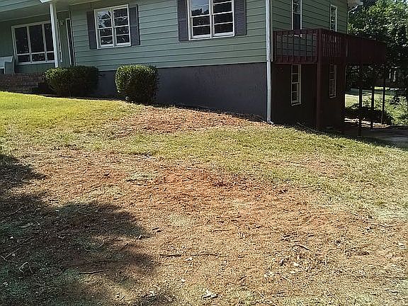 Sunroom leading out to rebuilt deck that wraps around to side yard overlooking the yard.
