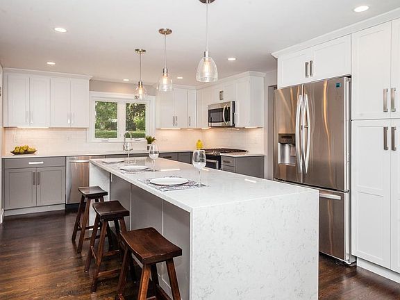 Completely & tastefully renovated this house has everything from condition to location to space.Little has been left untouched: new roof, windows, HVAC (gas), plumbing, electric, lighting, all bath fix, stained flrs, doors, hardware, & flr tile.Designer kitchen with White/Gray Shaker cabinets, quartz countertops, subway tile backsplash, SS appiances & a massive island w/waterfall countertop. Lots of rm to grow & spread out w/3 levels of living that include 3 bdrms, 2.5 ba, lrg frt to back FP liv & fam rms & a sunporch/playrm. Enjoy easy entertaining inside or out with open concept Kit/DR, a circular flr plan inside that opens to huge flat yard & new brick patio. Location provides easy commuting w/fast access to 93, Logan airport, & buses nearby to Orange lines. Enjoy the Fells & Wrights Pond/beach just a few blocks away too. Laundry h/ups w/sink in bsmnt & a 1 car attached garage & shed complete this package. Whats not to love? You literally just need to "turn the key" with this one!