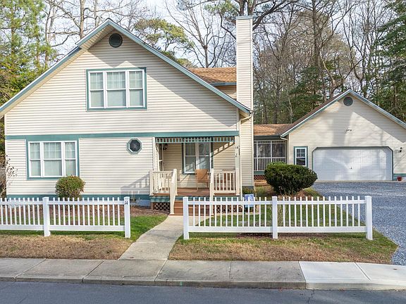 This beautiful 4 bedroom, 2.5 bath home is in the sought after neighborhood of Savannahs Landing. Once you enter this neighborhood, you will immediately feel a sense of peace as you are surrounded by the beauty of the woods and water. It's such a well-designed neighborhood and is conveniently located within walking distance to the beach, trails, shopping and dining. It's the best of both worlds! You’ll feel like you're away from it all, yet so close to the Town of Bethany and Ocean View and all the activities those towns have to offer. This home has been beautifully maintained and shows pride of ownership throughout. The first floor includes a living room, dining room, eat-in updated kitchen, and den with half bath. The primary bedroom and primary bath are also located on the first floor, three additional bedrooms are on the 2nd floor. All the bedrooms are a generous size. There is a covered porch on the front of the house and deck off the back of the house that spans the entire length of the house. A three-season enclosed porch is located off the kitchen. The home has an oversized double car heated garage with attic storage. There is also an attached shed, and an outdoor shower. The community has a community pool, tennis and pickleball courts, 2 lakes, a pollinator garden, and a storage yard for boats, etc.