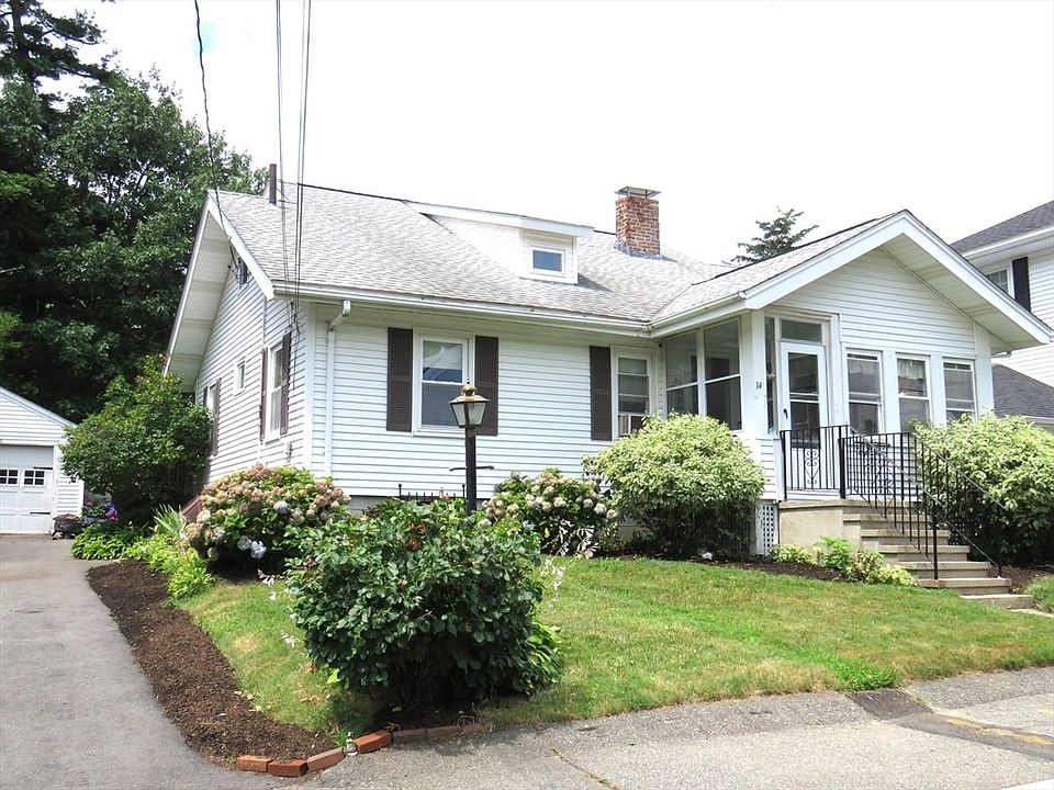 Welcome to this charming vinyl-sided bungalow featuring 7 rooms, 4 bedrooms and 2 baths. Nestled on a nicely landscaped lot on a quiet side street, this home offers convenient access to the highway. Step inside to discover a large kitchen with an abundance of oak cabinets and updated appliances. Beautiful wood flooring throughout most of first floor and the cozy fireplace in the living room adds to the warm and inviting atmosphere. Relax on the screened porch out back or enjoy the sunroom out front, perfect for soaking up natural light year-round. Outside, you'll find a spacious 2-car garage, ideal for storage or projects. This delightful home is now waiting for a new family to make it their own.