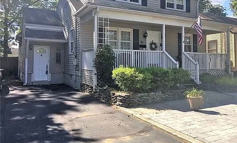 Welcome to your maintenance-free cape cod-styled home! The first floor has a living room, dining room, bathroom with Jacuzzi tub, updated kitchen with eat-in sunroom, and one bedroom with large slider to back deck. There is also an option to convert the dining room into a second bedroom. The second floor has its own private entrance, an updated kitchen, living room and two bedrooms. Other upgrades include: partially finished basement with washer, dryer, and wood burning stove, large welcoming porch, backyard with multi-layer trex deck and shed with electricity, hardwood flooring on first floor, new water heater, home office station, leaf guard gutters.