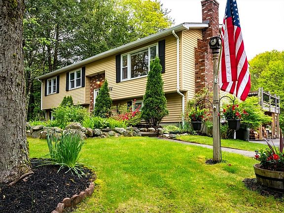 11.4 Acres of Country Paradise! Privately set back from the road, this beautifully maintained home features a new 4-bed septic, updated modern country kitchen and baths, and a cozy fireplace in the living room. Enjoy a bright family room with new Andersen windows and views of the serene backyard. The partially finished walk-out lower level with full bath offers flexible space for a main suite, in-law, office, or guests and waiting for your creative touches. Embrace your farm dreams with space for gardens, chickens, goats, or horses. Plenty of room to add a large garage or outbuilding. Beautiful flower gardens add charm and color throughout. Newer boiler, hot water tank, roof and washer/dryer. Close to Mid-State & High Ridge Trails, Crocker Pond and all schools!