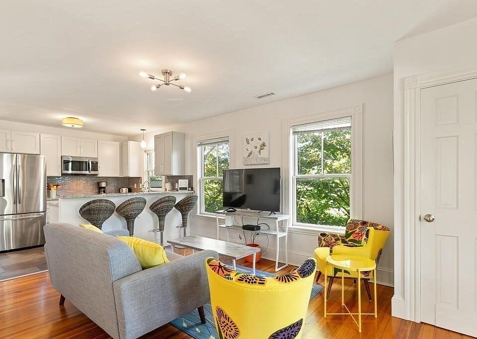 Gorgeous, newly renovated, 2 bedroom, 2 bath, condo in downtown Rockport with views over the harbor and Sandy Bay! This second floor unit combines historic charm with upscale modern amenities just a stone's throw to shops, restaurants, galleries, the Shalin Liu Performance Center, commuter rail, and beaches! Enjoy a sunny and bright open floor plan, an all-new kitchen w/ SS appliances, shaker cabinets & quartz countertops, in-unit laundry, brand new HVAC and HW, a back deck, an exclusive-use front porch area ~ great for entertaining or watching the July 4th parade, plus two-car parking! Whether you're looking for a centrally located low-maintenance home, a turn-key weekend getaway, or an investment property, this unit ticks all the boxes!