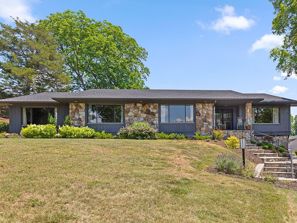 Welcome to 14 N. Crest Road located on historic Missionary Ridge.This mostly single-level mid-century modern home offers breathtaking views of downtown Chattanooga, Lookout Mountain, the Tennessee River, and beyond. Nearly every room in this home features stunning vistas. Beautifully renovated throughout to reflect modern living, this home combines comfort and style with exact craftsmanship. The main level features 4 bedrooms, 3 full baths, a formal dining room, a living room, a family room, and a laundry area. The entire home has been renovated, showcasing new kitchen cabinetry, a quartz countertop center island with bar seating for four, modern fixtures, high end appliances, dual ovens, and a custom tiled backsplash. A walk-in pantry ensures ample space for all your entertaining needs. The family room boasts custom built-in cabinetry and a stone fireplace hearth, creating a cozy space to curel up with a book. The formal living and dining rooms both boast fabulous panoramic views and are the ideal location for entertaing guests as you prepare to watch the fireworks in July or the seasons as they change in the valley below. The fabulous laundry room is conveniently located just off the kitchen. Down the hallway, you will find the 4 bedrooms. The primary suite on the main level offers stunning backyard views and beyond, featuring an impressive custom wall of mid-century storage hidden behind chic floor-to-ceiling doors. The renovated spa bath includes a glass shower, soaking tub, high end fixtures and a dual sink modern vanity, designed to be a soothing haven. Two custom walk-in closets provide ample space for even the biggest wardrobe. Two of the three hall bedrooms have en suite, fully updated baths with tiled showers and modern fixtures. The fourth bedroom has access via the hall. Each bedroom includes large closets, adding to the incredible storage found throughout this home. The walk out basement level features a spacious recreation room with a wet bar, perfect for entertaining or relaxing with a movie or the big game. A new half bath is conveniently located just down the hall.The mostly level lot features a wonderful inground pool with a pool house and half bath. The two-story custom deck and covered patio provide excellent outdoor living spaces and home for the grill chef. A rare second driveway access makes parking and accessing the home easy. Experience the perfect blend of mid-century charm and modern luxury in this exceptional home with unparalleled views. Located just minutes from downtown Chattanooga, Missionary Ridge offers stunning views, history and one of a kind living in Chattanooga. Buyer to verify all information.