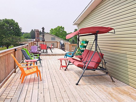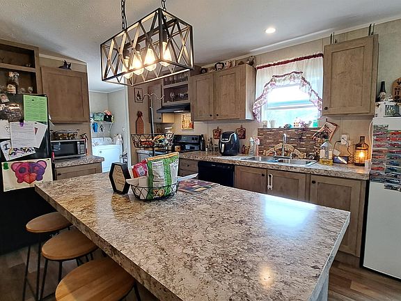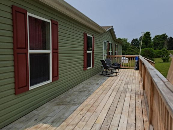 YOUR DIAMOND IN THE COUNTRY. This 2020 double wide may be the largest they build. Over 2000 SF, 5 bedrooms, 3 full baths on nearly 6 acres. Lots of decking for your outside pleasure surrounding a large above ground pool and also a basketball court (concrete} with solar lights. The kitchen is open to the dining area and the den or gathering room. There is also a large living room. Consists of 3 parcels and the yard, mowed area, is level. The wooded, not mowed area, is sloping. The nice, newer storage building will convey. The house is on a permanent foundation and offers one level living. Move-in condition.