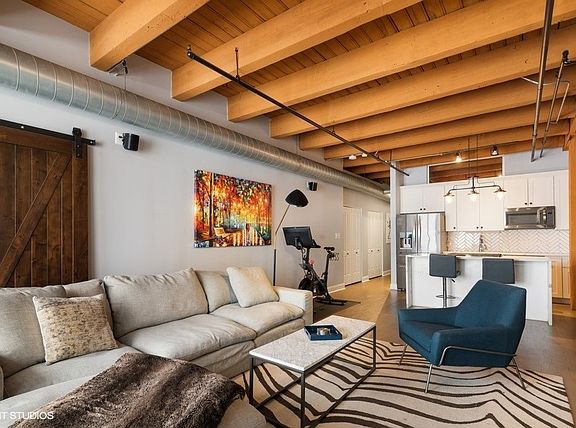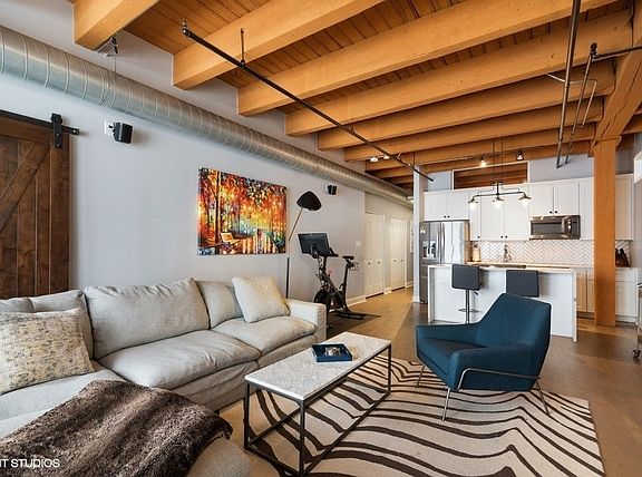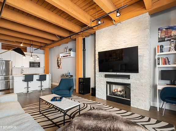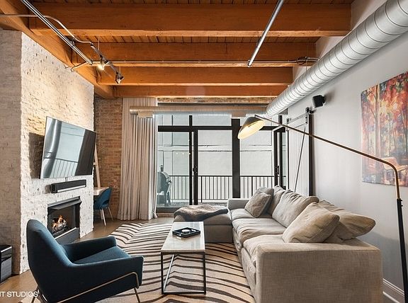West Loop lovers will be thrilled to be in this unbeatable location - moments from all the joys of this popular and exciting neighborhood. However, upon entry, this unit offers unmatched privacy! Trendy, sophisticated updates at every turn. The entire residence was redone two years ago and is sparkling & new! TIMBER LOFT dreams come true with extremely elevated ceiling heights and new eye-catching hardwood floors throughout. Perfect split floor plan with sizable bedrooms and an overload of storage! New open kitchen features glamours waterfall quartz counters, unique and classy herringbone tile backsplash, soft close white shaker style cabinets and SS appliances. Clean and crispy marble baths with high end finishes. En suite primary suite with tons of custom walk-in closet storage and excellent bath accommodations with dual vanity and grand walk-in marble fitted shower. Stylish and functional rich barn doors, high end lighting fixtures and a dramatic show stopper stone fireplace confirm all details have been thoughtfully executed. In-unit laundry, coat closet and pantry make this plan extra ideal. Living room features full size sliding doors for access to your oversized private balcony for fresh air. Secure garage parking extra $35k. Extra storage included. Building has huge common roof deck with truly spectacular skyline & West Loop views to entertain plus bike storage! Wildly close to Whole Foods, SOHO, Fulton Market, Randolph's famous Restaurant Row, Madison excitement, shopping, Google HQ, awesome big parks, Skinner Elementary and more! Great value to be in this booming location with new construction prices rapidly increasing around the corner. LOW ASSESSMENTS!