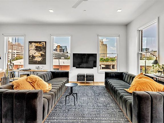 This luxury property overlooking downtown Oklahoma City is uniquely designed with bold features and perfect amenities. This property is unique in that the primary bedroom, living room, kitchen, guest bath, and balcony are all on the same floor. Situated on a corner lot expansive balcony offers a perfect view of the downtown skyline with plenty of space for lounging, seating, and for pets to enjoy the artificial turf. The kitchen boasts designer finishes, including black Dekton countertops and Bosch appliances. Downstairs, you will find a guest bedroom with an attached bath, a large foyer, and an attached two-car garage and coat closet. Additionally, the HOA takes care of Christmas lights in the winter, landscaping, salting driveways, street maintenance, and more. This property offers an incredible opportunity to own a lock-and-leave retreat in the heart of OKC that stands out from the surrounding properties as a one-of-a-kind build.