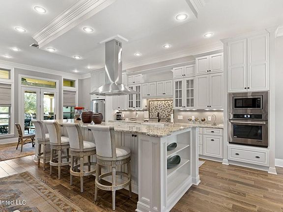 Comfortable elegance in the country is totally move-in ready with designer furniture, rugs, linens, and an outfitted gourmet kitchen w/ granite & Stainless Jenn-Air, farm sink, wet bar w/ icemaker, w/i pantry. Outdoor kitchen boasts a fireplace & mounted tv to watch all the winning games. Almost 35 acres, fenced & gated with live oak trees, gently rolling lawns, Private lake with dock, boathouse w/lift, 40x40 barn. Work fr/home w/ high fiber by Coast Connect. Tankless water heater, water softener, whole home generator, screened porch furnished in McKenzie-Childs. Primary suite overlooks lake w/ trey ceiling, exterior door leads to patio & fenced dog yard, w/in shower + soaker tub and 2 sep vanities. Open floor plan w/ split living. Safe room/