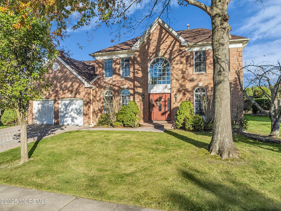 Welcome to 14 Nicklaus, a meticulously maintained 4 bedroom, brick front, colonial style home where you can enjoy a country club lifestyle without paying association fees! Situated in Shore Oaks— one of Farmingdale's most desirable neighborhoods, within the prestigious Eagle Oaks Golf & Country Club. This home offers over 3,700 sq feet (including finished basement) and combines elegance, efficiency, and entertainment-ready spaces—all without the added cost of HOA dues. Enter into the Grand Two-Story Foyer Featuring Gleaming Wood Flooring And Andersen Windows Throughout. The Spacious Kitchen Offers Granite Countertops, A Center Island, And Stainless Steel Appliances, Flowing Seamlessly Into The Family Room With Vaulted Ceilings, A Cozy Wood-Burning Fireplace And Newer Engineered Hardwood Flooring Perfect For Entertaining And Everyday Living. Major Big Ticket Items Recently Updated Including The Roof, AC, Furnace, Water Heater, And Refrigerator (All Just 3 Years Old). The Home Also Features A Full Finished Basement, Providing Ample Space For Recreation, A Gym, Or Home Office. Outdoor Living Shines With A Newly Installed Paver Driveway, A Sprinkler System With A New Controller, And A Storage Shed For Added Convenience.