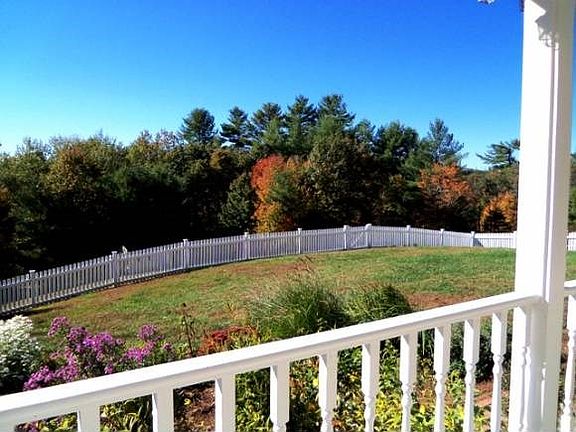 This spacious colonial has a new lower price and a freshly painted first floor. Views Mt. Monadnock and Contoocook River access/frontage, a farmer's porch and white picket fence with arbor surrounded by beautiful perennials to keep the dogs or kids safe. The first floor has a front to back living room with brick fireplace and wood mantle with dental molding. Sliders lead out to your spacious deck and hot tub. The kitchen and dining area are are open concept, and a 1/2 bath with laundry round out the first floor and attached 2 car garage & paved driveway. There is hardwood throughout the first floor. Upstairs is a front to back master with full bath and double sinks, lg. walk in closet and mountain views. There are two more bedrooms and a full bath on the second floor and a huge bonus room over the garage ready for a billiard table, teen space, or movie room. Less than a mile to schools, hospital & 2 miles to downtown Peterborough! Quick close possible. ALL offers considered.