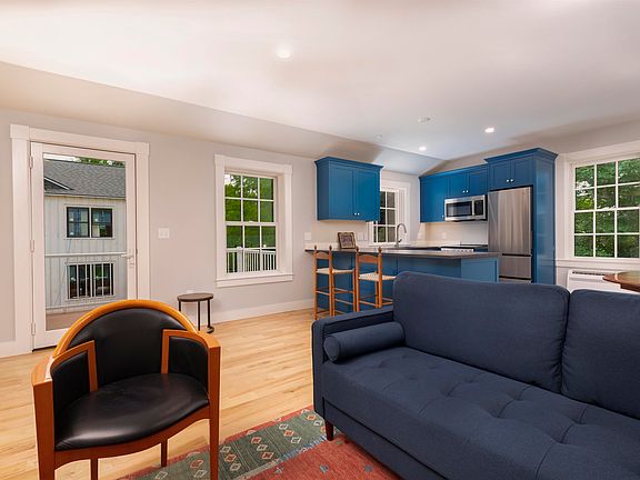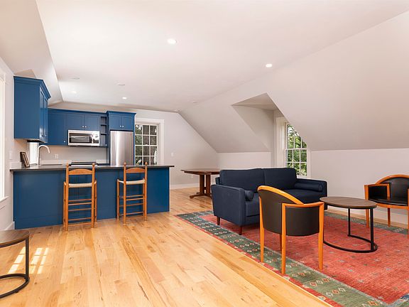 New construction, sparkling and bright easy condo living in a fabulous village setting. This is the condominium that the Upper Valley has been waiting for: 2 bedrooms, 2 bathrooms, plus huge top floor loft and washer dryer hook up.  Includes a garage and designated parking PLUS you can walk to restaurants, shops, library, and so much more. This is the home to downsize to and let the maintenance be taken care of for you. Wood floors, beautiful open floor plan, kitchen with living/dining and fireplace. Primary bedroom is ensuite,  beautiful closet system is built in. The second bedroom or office is across from a full bath. Enjoy the sitting room off the primary or the light filled sunroom with hours of southern and western sun. There is your own deck off the kitchen and a common patio area for socializing. Designated,  ample locked storage in the basement and only one other unit in the building, all on 3.08 acres in the heart of Lyme, minutes from Dartmouth College and Dartmouth Health. Energy efficient with mini-split heat and a/c and loads of farmhouse charm. Simplify life, reduce your footprint in an energy efficient condo and enjoy this stylish new home. Original building is circa 1812, reconstructed in 2022. This unit is on the second floor with a third floor loft and is the largest unit at 14 On the Common. Move in this summer!
