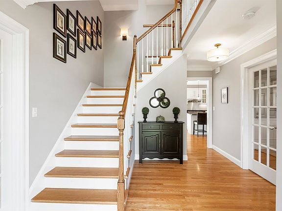 Nicely appointed colonial perfectly situated at the end of a cul-de-sac in a highly desirable neighborhood. The family room features a gas fireplace & open floor plan to the modern kitchen adorned by white cabinetry, pantry, stainless steel appliances, island & Quartz countertops. The foyer is flanked on both sides by elegant French doors leading to a formal dining rm & a large office/formal living room. A mudroom, bathroom & another office complete the main level. The upper level features a generous primary bedroom offering an oversized walk-in closet & beautifully renovated bath w/double vanity, soaking tub & custom tile shower w/premier glass door. 2nd level also houses a laundry room with barn door, hallway bath & 3 other bedrooms w/double closets. Other features include hardwood flooring, a 2-car garage boasting epoxy flooring plus a new vinyl deck overlooking a wooded yard. The walk-up attic & the walk-out basement have windows for natural light -ready for your future finishing!