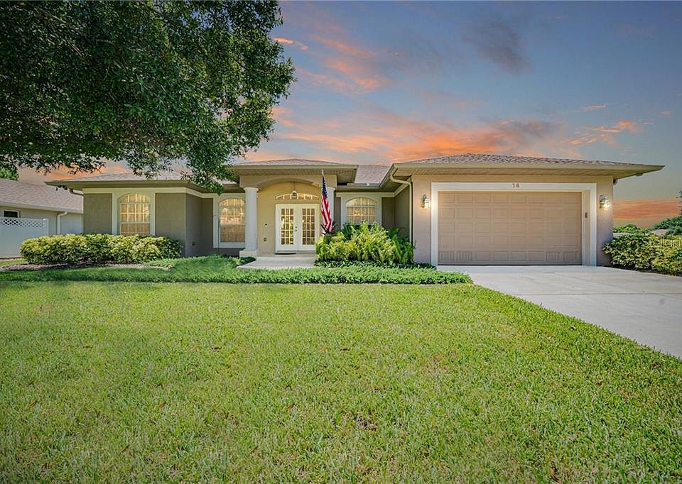 Classic and attractive design elements on a lovely location create a timeless appeal perfectly found in Rotonda West. A French door entrance transcends you into a grand open concept layout where ample natural light streams through expansive windows and additional French doors to the lanai. High ceilings, elegant archways, and tile floors in a hopscotch pattern throughout the main dwelling areas offer a comfortable space for gathering and relaxing. At the foyer, French doors open to a den or office ideal for homeschooling or working remotely and opposite is a spacious dining room, ideal for meeting the needs of today's lifestyle. The great room boasts more French doors leading to the screened lanai and adjacent is the sizable kitchen boasting numerous upgrades including new granite countertops and stainless sink, faucet and appliances. A dining nook and breakfast bar provide casual dining options for the family and guests. The generous master suite with French doors to the lanai provides a sanctuary for self-care with a spa-like en-suite bath featuring dual sinks, walk-in shower and jetted soaking tub. Two additional bedrooms and a full bath are sure to please the rest of the family or make guests feel right at home. The laundry room offers shelving, cabinetry, a sink and new granite countertops, and several smart-home innovations enhance the living experience including a tankless gas water heater, smart HVAC thermostat, smart garage door opener, and smart sprinkler system. Rotonda is conveniently located with numerous world-class golf courses, a short drive to secluded barrier island beaches and the enchanting draw of Old-Florida.