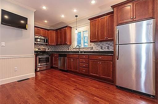 Great location, convenient to downtown Winchester, Middlesex Fells, and highways. Just finished....Totally renovated 2 bedroom in the Muraco School district. New cherry and granite kitchen with dishwasher, disposal, new bath, new gas heating system, central air, hardwood floors throughout. New washer & dryer on first floor, replacement windows throughout. Off street parking.
