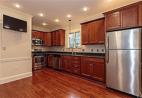 Great location, convenient walk to downtown Winchester, Middlesex Fells, and highways. Totally renovated 3 bedroom in the Muroco School district. Cherry and granite eat in kitchen with stainless steel appliances and flat screen TV. Updated bath, new gas heating system, central air, hardwood floors throughout. Washer & dryer in unit, replacement windows throughout. Interior and exterior recently painted, hardwood floors refinished, 2 off street parking spaces, basement storage.