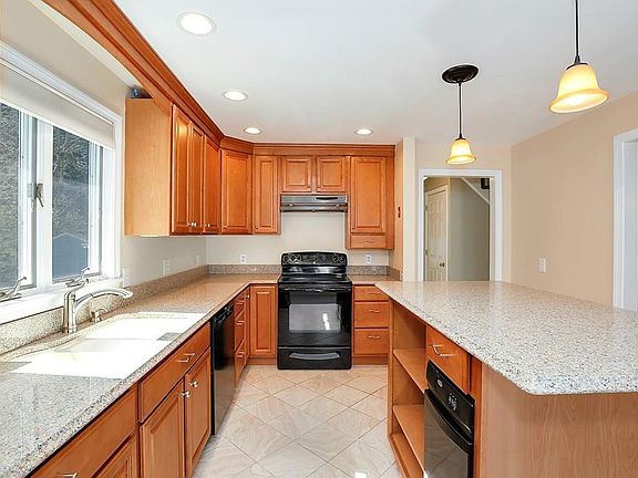 Gorgeous home with an excellent layout! As you enter the home you are greeted by an entry hall with soaring ceilings and a large closet. Just off the entry is the spacious living room with gleaming hardwood floors and an elegant fireplace. The roomy separate dining room opens up to the remodeled kitchen with a half bath next to it. The modern kitchen features plenty of attractive cabinetry, a pantry, stone counter-tops, stainless steel appliances, and a massive kitchen island. Upstairs is the comfortable carpeted master suite with a full en suite and walk-in closet. There are two more substantial bedrooms with good sized closets and full bath on this level. There is more living area with over-sized finished basement. Enjoy al fresco living with a Trex deck and fenced in yard. This lovely move in ready home is a must see!