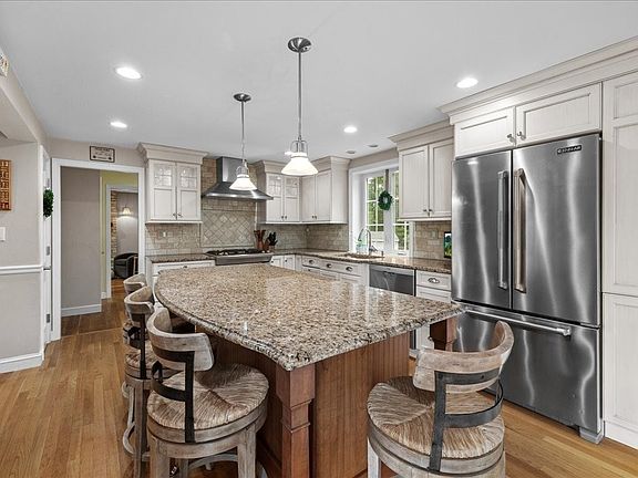 Towards the end of a cul-de-sac abutting conservation land this meticulously maintained expanded Cape features three bedrooms, one full bath, and two half baths. This home boasts a remarkable kitchen sure to delight any cook or baker, along with a formal dining room and a warm, inviting layout with spacious living areas and thoughtful updates. Enjoy a gorgeous three-season porch and oversized deck, perfect for relaxing, entertaining or hosting gatherings. The beautifully landscaped backyard offers a private outdoor retreat. The finished basement features a remarkable custom bar and a dedicated office. The immaculate garage includes a workbench and a cozy wood-burning fireplace ideal for hobbies or projects year-round. Also included is a fisherman's dream with dedicated storage underneath. Bonus- a roof less than five years old. A commuter's delight with close proximity to major routes. This lovely home offers comfort, convenience and character throughout. Truly a must see!