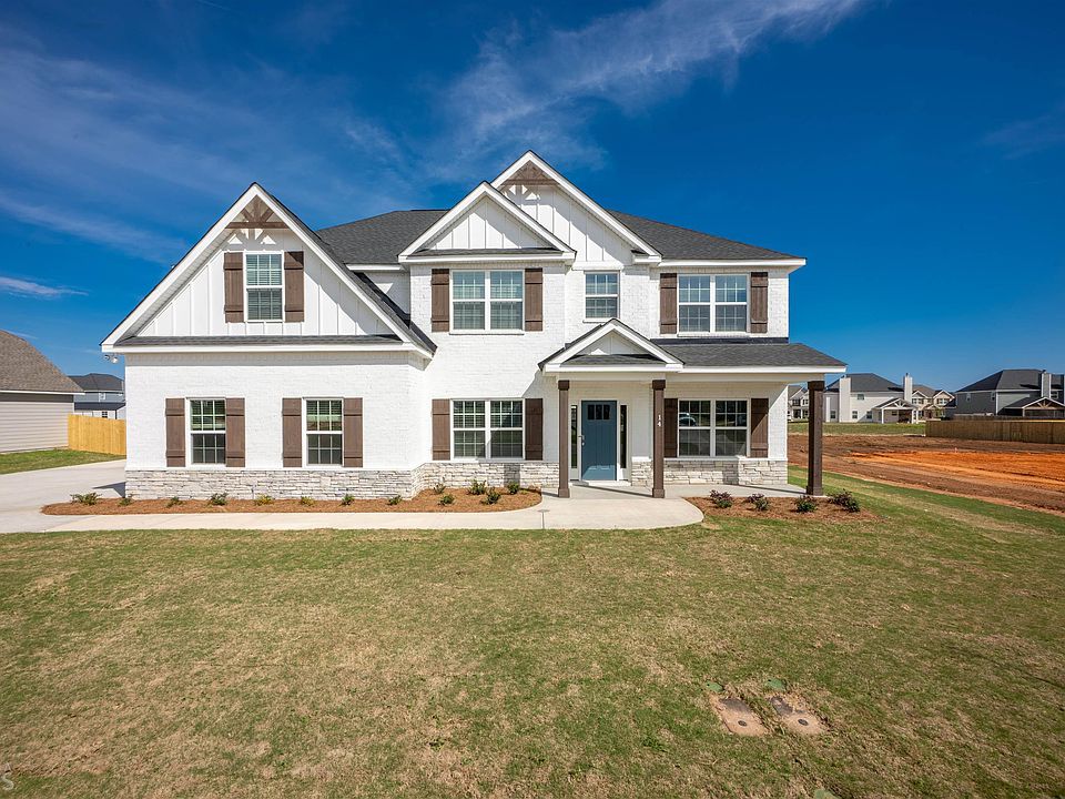 Welcome to Mossy Meadows - a Hughston Community! Our HOTTEST selling plan! This must-see CYPRESS plan contains 5 bedrooms and 3 baths and a total of 3,158 energy efficient square feet! Featuring an inviting open kitchen concept with stainless steel appliances, beautiful granite counters, sink WITHIN the large island, and plenty of storage in the walk-in pantry. Enjoy meals in the formal dining room with designer coffered ceilings and timeless judges panel with chair rail. Cozy up in the Great room by the wood burning fireplace and relax! Laundry doesn't have to be a chore in this tiled laundry room on the 2nd level. The large owner suite on 2nd level includes a sitting area, 2 vanities, garden tub, separate shower, and oversized walk-in closet! Upstairs you will find a step up into a versatile media room. Bedroom on main level is great for overnight guests. When using the owner entry from the two-car garage you will find a convenient drop zone including built-in storage cubbies - making mornings a breeze! Intelligent home technology - Keyless Entry, Touchless Video doorbell, Qolsys IQ control Panel, controlled front porch lighting (and Gameday patio speakers) - all connected through ONE app and controlled from anywhere. Dare to compare our INCLUDED luxury features! Hughston Homes' Signature Gameday patio is perfect for entertaining or to unwind outdoors! This 12'x16' patio includes a wood burning fireplace, speakers, ceiling fan, and pre-wired for your TV above the fireplace!
