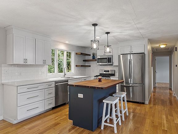 Enjoy a piece of paradise on a cozy cul-de-sac in this carefully kept 3 bed/1.5 bath raised ranch just north of the Massachusetts border in Nashua. Some features include an open-concept kitchen with quartz countertops, stainless steel appliances, shaker-style cabinetry, and a white subway-style backsplash. The dining and living room has an abundance of natural light with plenty of room for entertaining, all surrounded by glistening hardwood floors and a gleaming gas fireplace. Other features include a fully finished basement w/bonus room, a step-out slider leading to a privately fenced-in backyard including a putting green, retractable awning, and a garden area with plenty of space to create your own masterpiece. The location is a complementary commute to almost anywhere with easy access to Rt.3, Rt.111, and Rt. 113. Nashua is known for its suburban-style living and abundance of cafés, restaurants, shopping centers, and amenities such as Nashua Country Club, Boston Billiard Club & Casino, Mine Falls Park, and plenty of walking and hiking trails.