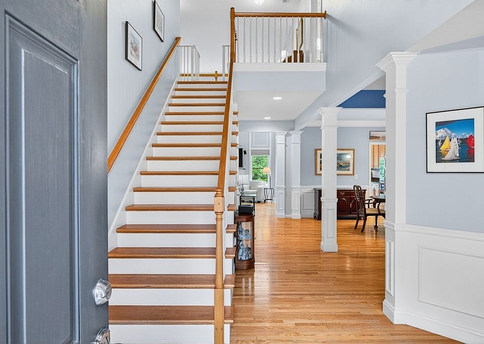 Gas fireplaceExpanded trex deckLiving and dining roomQuiet streetGleaming hardwood floorsDramatic two-story great roomStainless steel appliances