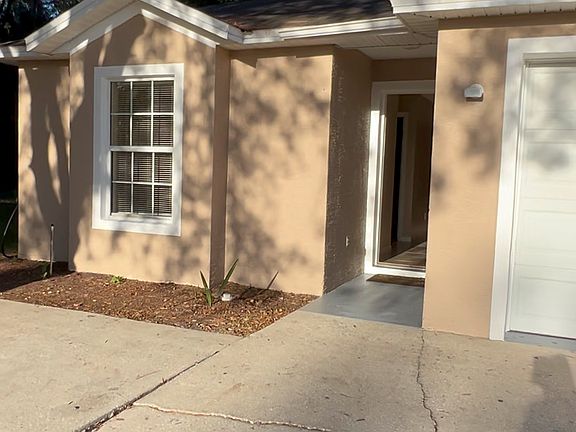 This large duplex unit offers 1,250 sq. ft. of comfortable living space, featuring 3 bedrooms and 2 bathrooms. Highlights include an eat-in kitchen, a generous living room, and a spacious master suite. Enjoy Florida's beauty from the covered, screened patio perfect for grilling and relaxing. The unit comes with a 1-car garage, a large driveway, fresh paint, and updated stainless steel appliances, including a glass-top stove. Vaulted ceilings and porcelain tile throughout give a modern touch.