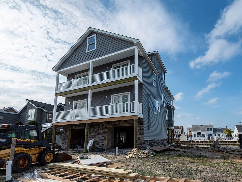 BRAND NEW WATERFRONT HOME! Seconds from the open bay w/ BRAND NEW BULKHEAD. 1st fl open flr plan w/ 9ft ceilings, custom kitchen incl. island w/ breakfast bar, granite counters, tile backplash & SS appl package. Gas FP w/ Stone Surround. HW flrs thoroughout. 1st flr bdrm w/ full bath. 2nd flr offers huge Master Bdrm with double WIC, private balcony, and full bth w/ shower stall & whirlpool tub . 2nd flr also offers 2 more bdrms, full bath & laundry. Walk-up attic (454sqft) can add more living space and also has rough plumbing for full bath. Out back, large, covered concrete patio w/ lighting & fans. 2 levels of decks off front & back. 3 -Zone High Eff. HVAC, Silverline windows, tankless WH. Paver driveway will lead to 2 car oversized garage w. interior access. Can be complete 30-45 days.