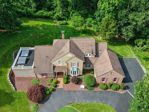 In an idyllic setting, 14 Quail Ridge Drive is one of six homes on a quiet cul-de-sac. On a 1.37 acre lot, the landscaping and circular drive accent the attractive architecture. The formal entrance with adjacent spacious living and dining are showcased by an upper balcony. One continues into the well-planned kitchen, dining area and family room with freshly finished hardwood floors, a large brick fireplace with porcelain pellet stove insert. The expansive main floor bedroom has an overlooking reading room loft, with large in-suite bathroom containing walk-in shower and walk-in closet. The indoor solar panel heated infinity pool has a newer(2 YO) liner. With its own shower and separate cedar sauna the pool is a relaxing and private sanctuary. The main floor master bedroom and main floor laundry area allow for one floor living if that is desired. Upstairs, one finds three ample size bedrooms, all with oversized closets and pleasant views. The full bath, cedar closet and two storage attics complete the upper level, and the balcony overlooking the family room below leads down the main staircase. The home boasts central vac and central air. The over one acre lot with its backyard peaceful solitude includes a variety of wildlife and bird visitors. A Generac whole house generator gives back-up power adding security in case of the rare power outage. The entire house has a coveted, energy saving and eco-friendly geothermal system for heating and cooling. There is a separate HVAC unit for each floor allowing for comfortable temperature control on each floor. The HVAC unit for the geothermal heating and cooling was replaced in 2025. Downstairs the spacious finished basement adds to the already numerous spaces and features of the home. With a three car oversized garage this home has everything to make your dreams come true.