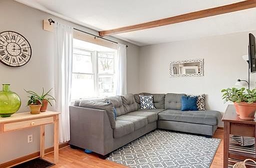Turnkey Ranch - perfect starter home or downsized living situation. Lovely natural lighting through the open flow of the living area. Kitchen has modern features including newer stainless appliances, white cabinets, subway tile backsplash, and a trendy chalkboard wall. Two cozy bedrooms and one bathroom complete the main floor. The lower level includes a finished bonus room for extra space! Fenced in yard perfect for grilling and with spring having sprung, the flowers have started to bloom. Property updates include new roof and oil tank.