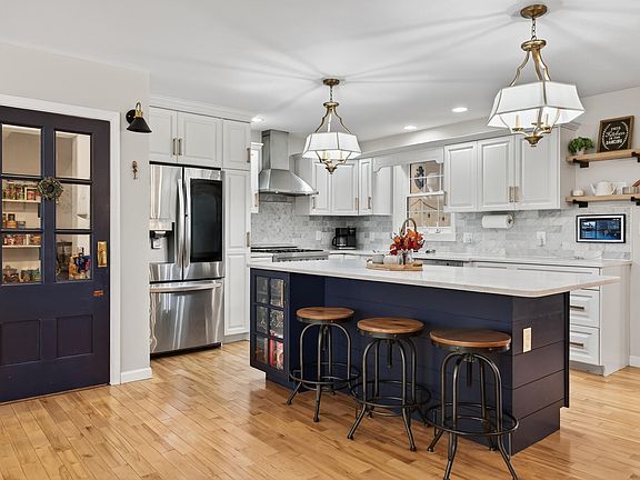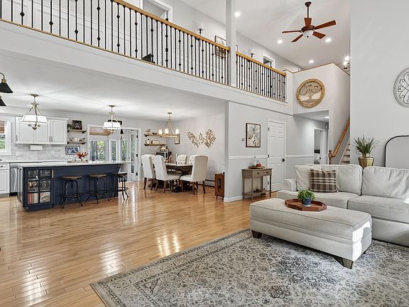 Exceptional opportunity in Kennebunk, this beautifully updated and expanded property combines modern living with outstanding income potential. The main residence offers a bright, open layout anchored by a vaulted living room with gas fireplace and abundant natural light. The kitchen impresses with white cabinetry, a bold navy island, quartz countertops, brass lighting, and premium appliances including a gas range and InstaView Smart refrigerator. A large dining area and three-season sunroom extend the main level, creating inviting spaces for daily living and entertaining. The first-floor primary suite provides a peaceful retreat with a well-appointed ensuite bath, while a mudroom and laundry room enhance functionality. Upstairs, three additional bedrooms, a large office, and a flexible bonus room offer ample space for family, guests, or home-based work.