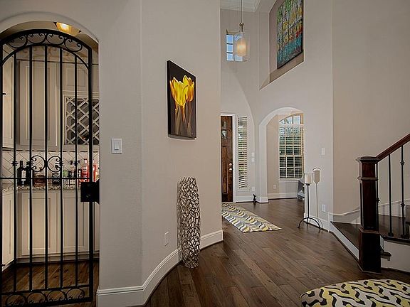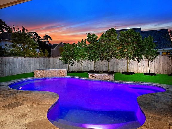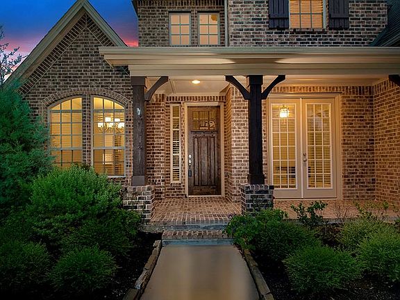 Spectacular home on a corner lot in Creekside! Open and airy Coventry plan featuring a covered front porch, sweeping wrought iron staircase, soaring ceilings, art niches, gorgeous hardwood floors, lovely archways and abundant storage throughout the home. Island kitchen with breakfast bar, SS appliances, double oven, granite counters and butler's pantry opens to breakfast room and two story den with gas fireplace; elegant formal dining; study with crown moulding and French doors; master retreat and 2nd bedroom down; two bedrooms, media and game room up; 3 car attached garage; spacious yard with covered patio, outdoor kitchen, beautiful pool with waterfalls and spa. Creekside offers miles of hike and bike trails, aquatic center, nature preserve, lakes, parks and more!