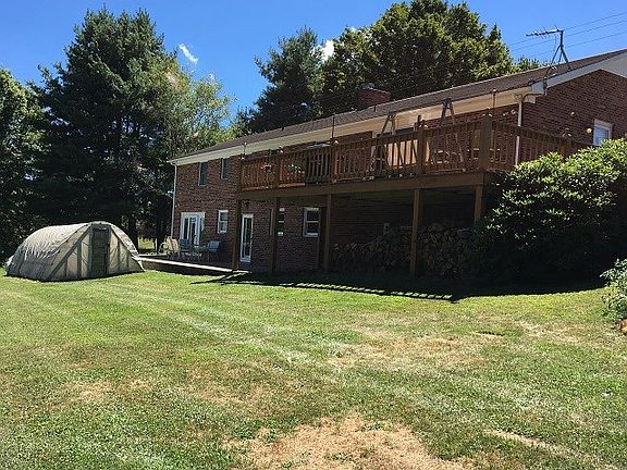 Spacious home situated on nice corner lot with new shingle roof. Home has 4 bedrooms, 2 full baths. Dining room opens to large rear deck. Living room with brick fireplace, kitchen, breakfast room, laundry room on main level with hardwood and tile floors. Full finished basement offering large great room with woodstove, large rec room, and bedroom. Home also features attached 2 car garage with concrete driveway and nice storage building. Located within 5 miles of Blue Ridge Parkway and VA/NC line.