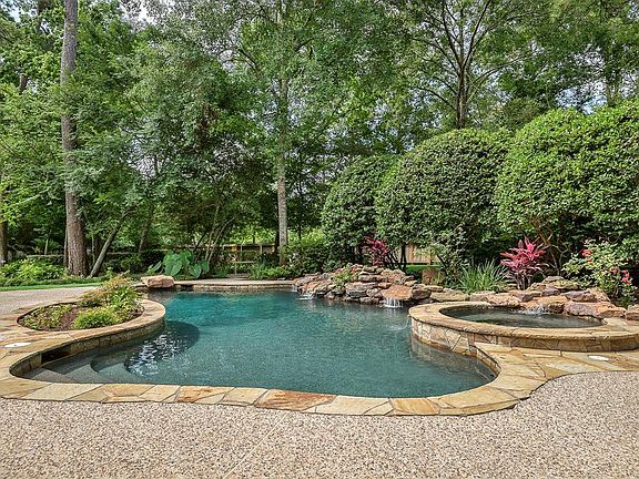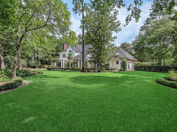 This Lyons custom home is full of southern charm! From the moment you drive up to the white columns & balconies on the front of the home to the gorgeous backyard gardens & pool with waterfall feature! HOME NEVER FLOODED! This home is move-in ready! Updated baths, kitchen, paint, fixtures, LED lighting & finishes! New carpet & beautifully stained solid wood floors! A/V - 7 channel surround in 2 rooms. Kitchen is open to family that has 2 walls of windows for views & natural lighting! Kitchen has beautiful granite counters, Kitchen Aid appliances & DCS gas cooktop. Master suite offer views of the back gardens & pool. Master bath has travertine, frameless enclosure, granite counters, new lighting, mirrors, fixtures & hardware. Privacy & serenity of a backyard oasis will take your breath away! Pool, spa, waterfall & pool bath on a huge lot that backs onto a green belt. Great schools in a front of the Woodlands location offers easy access to Market Street, I-45, Exxon campus & downtown!