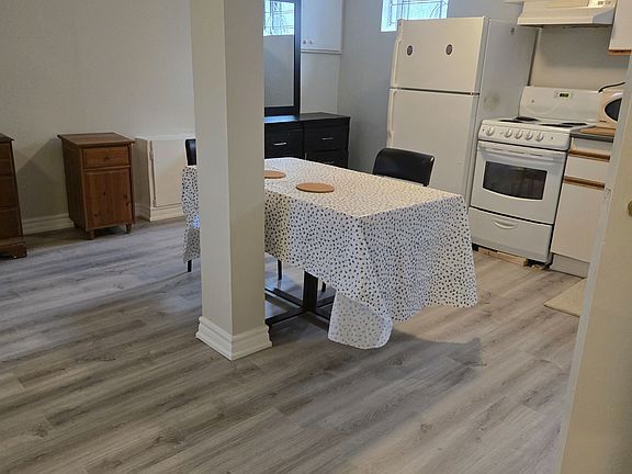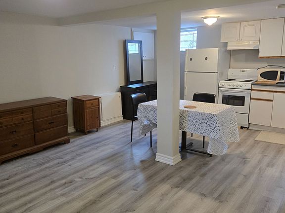 Discover your ideal living space in this beautifully renovated bungalow, set on a spacious and tranquil lot. This freshly painted lower-level apartment offers harmonious blend of modern comfort and convenience. The bright kitchen features a ceramic backsplash and updated finishes, while the renovated bathroom showcases elegant fixtures and clean design. Ceramic flooring throughout ensures easy maintenance and a polished aesthetic. This self-contained basement studio apartment provides privacy while maintaining a welcoming sense of community. Situated in a quiet, friendly neighbourhood just minutes from the subway, the home offers a perfect of serenity and accessibility. Ideal for a long-term tenant seeking stability and comfort, this inviting apartment promises a peaceful living experience in a well-cared-for environment. Shared laundry facilities might be available once per week. Don't miss the opportunity to make this modern and conveniently located space your new home.